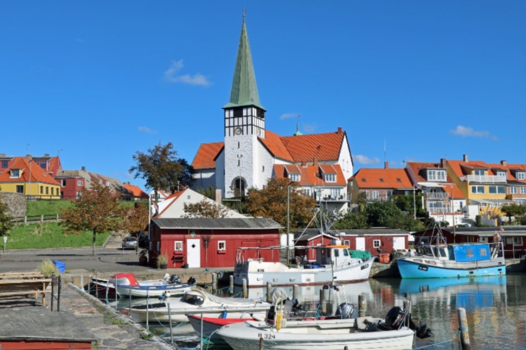 På Rønne Havn ligger den smukkeste kirke af alle, næsten helt ned til vandkanten og fiskermiljøtert på havnen.
