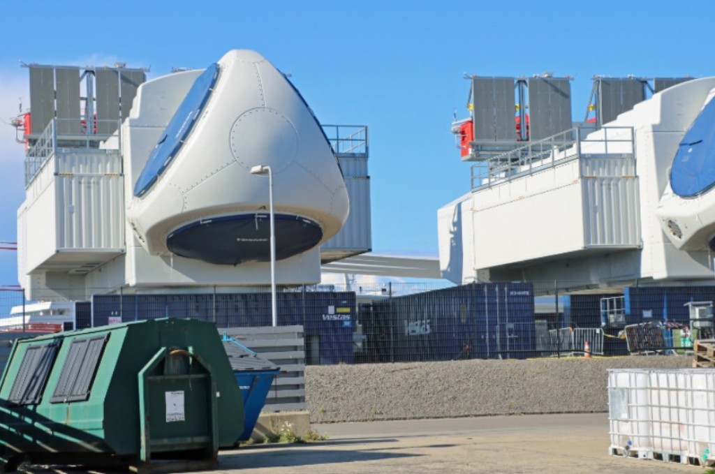 Er stadig på Rønne Havn lige over for Molslinien Expres 5. Her ligger nok Bornholms største arbejdsplads, Vestas, hvor der hele tiden bliver bygget nye vindmøller. Nogle kæmpe kolodser i stål, jern og fiber, som efter forarbejning bliver til nogle smukke vindmøller.